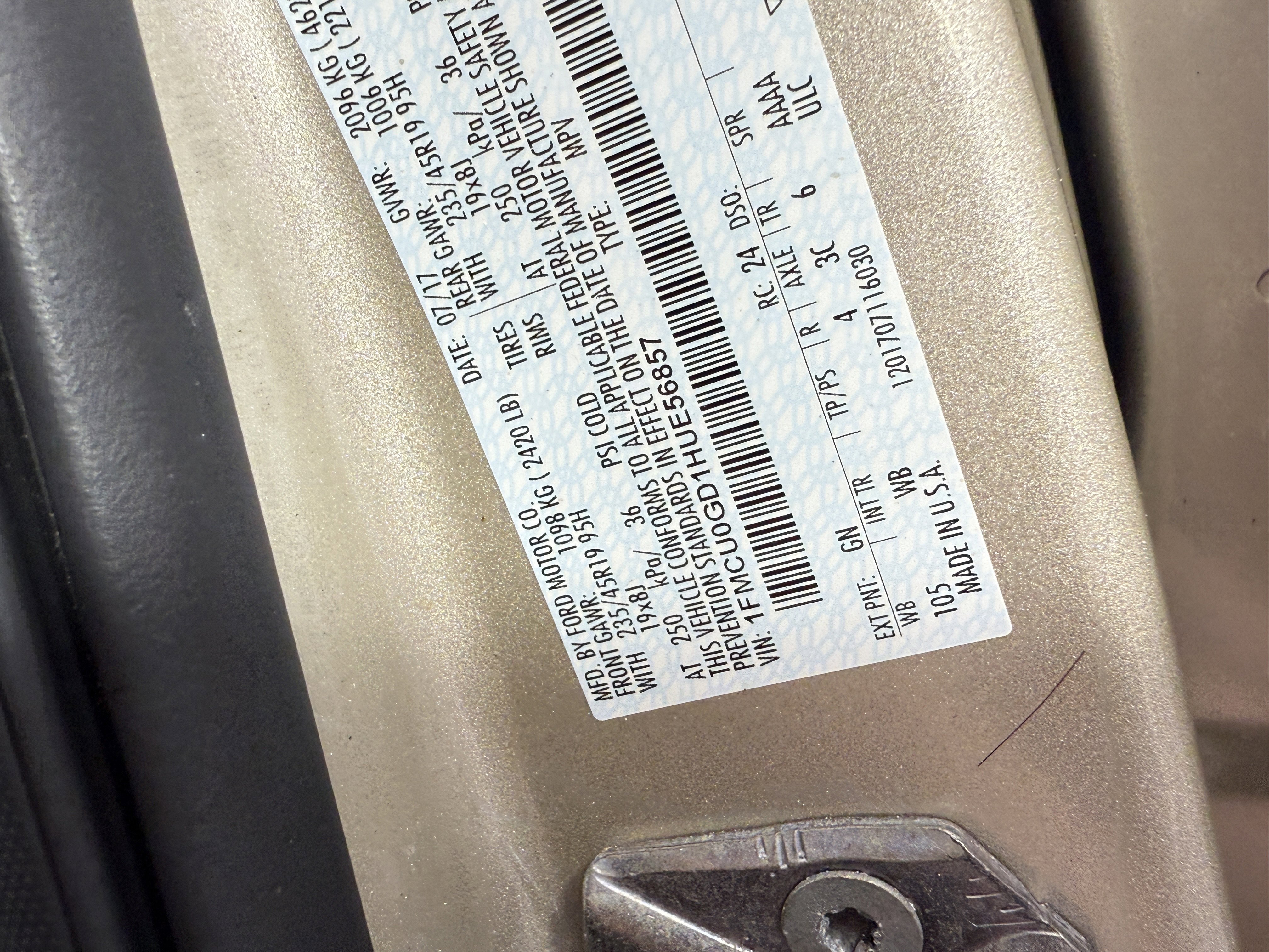 • VIN # 1FMCU0GD1HUE56857