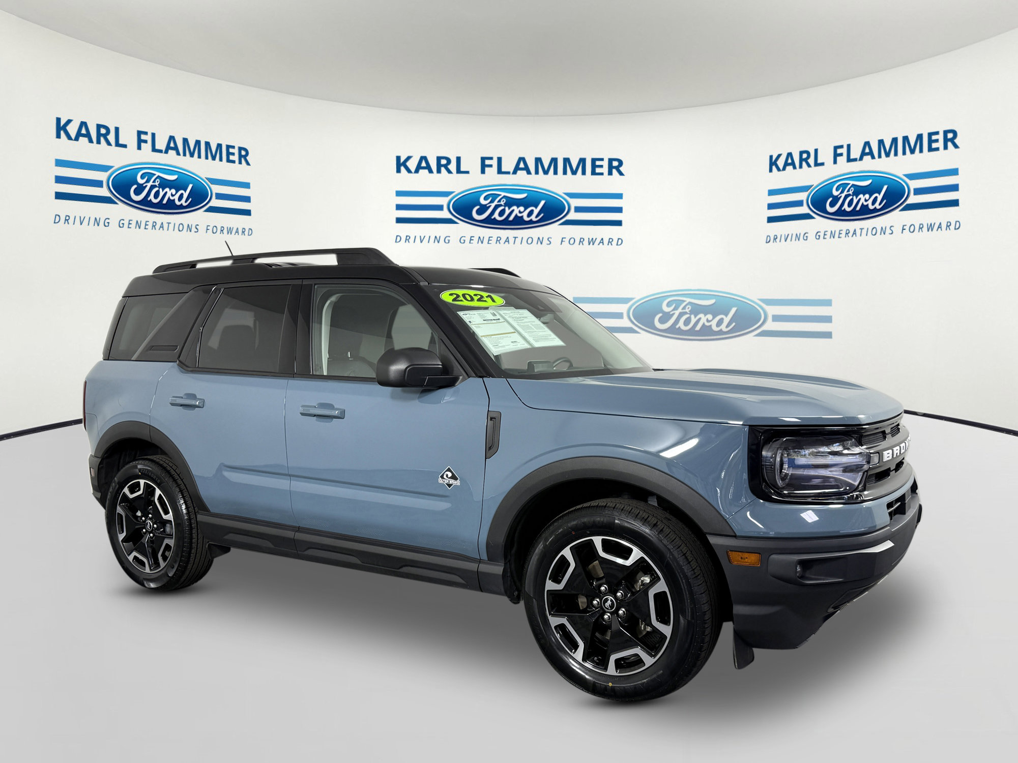 Stand out in this well-equipped and highly sought-after Bronco Sport Outer Banks finished in **Area 51** with **Navy Pier Leather-Trimmed Interior**. This one-owner SUV delivers premium comfort, advanced safety technology, and true 4x4 capability.